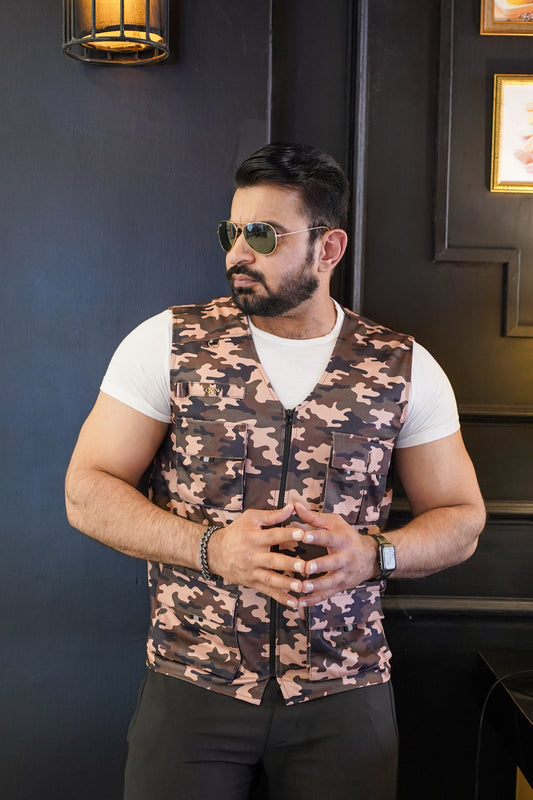 Premium Italian Textured fabrics Brown Camouflage Sidu Four Pocket Jacket SDJkt-22