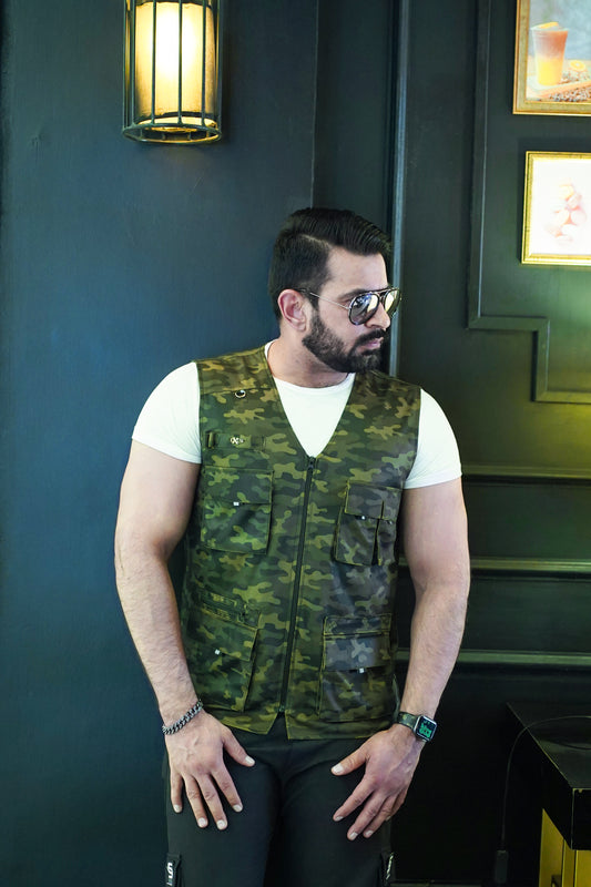 Premium Italian Textured fabrics Army Green Camouflage Sidu Four Pocket Jacket SDJkt-21