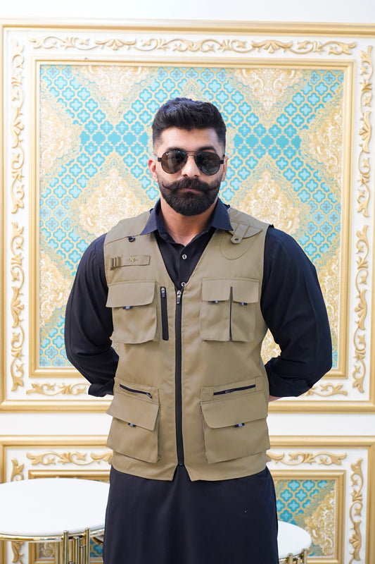 Premium Cotton Fleece Four Pocket sleeveless Jacket Beige 12